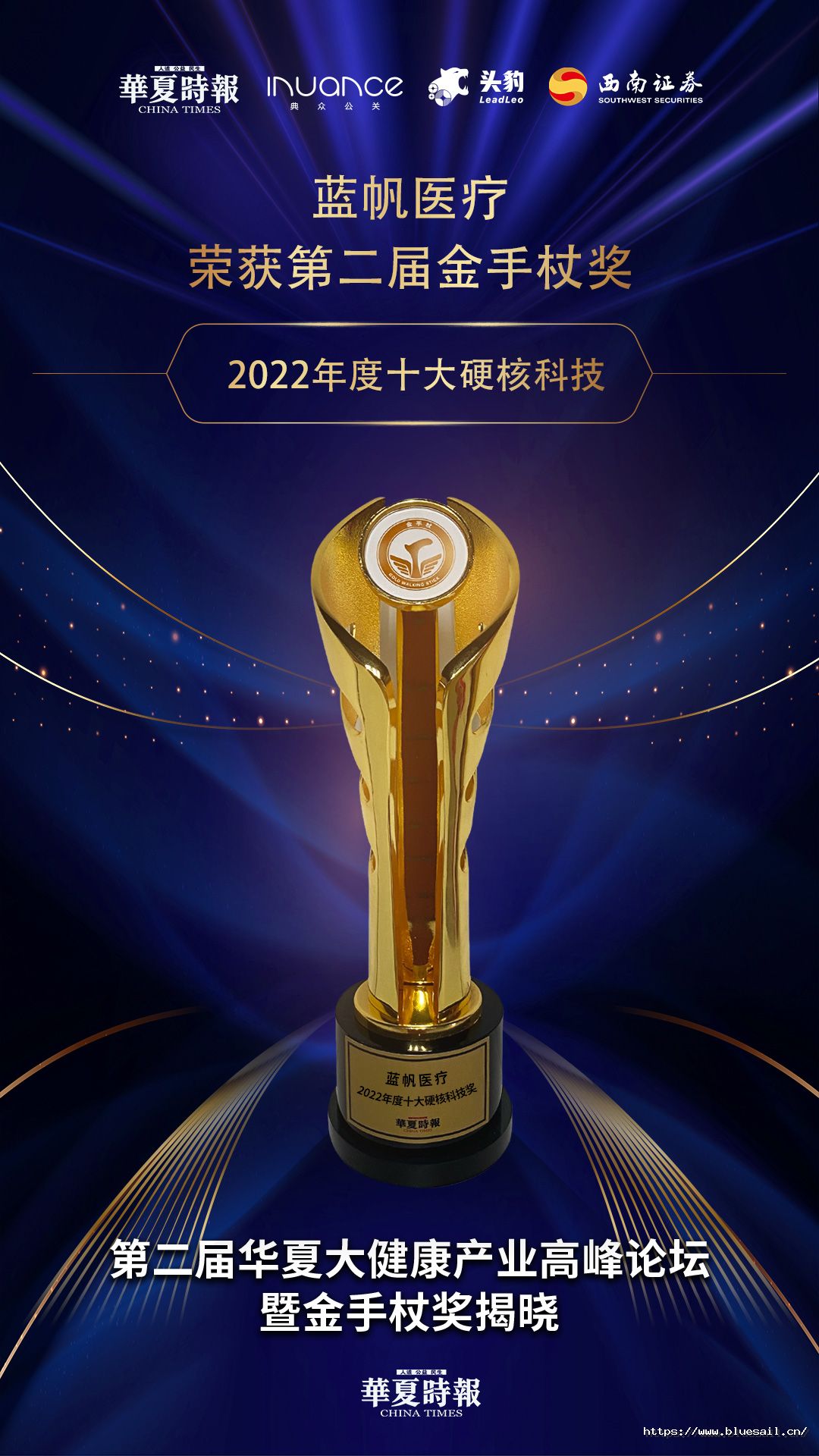 蓝帆医疗荣获第二届华夏大健康金手杖奖“2022年度十大硬核科技”