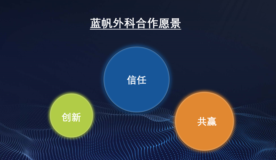 在展示完蓝帆外科的硬实力后,张磊先生也对蓝帆外科的企业软实力进行了介绍:蓝帆外科着力搭建多元化、国际化、特色化的学术平台,力求最大限度地满足临床客户的学术合作需求。特别是与国家卫生健康委医药卫生科技发展和研究中心合作的基层医疗机构培训项目,蓝帆外科积极响应国家医改政策,在突破地域限制、提升基层医疗机构微创技术诊疗水平、降低医疗诊治整体成本方面尽最大努力作出自己的贡献,用实际行动践行了“让医疗普惠”的国家政策。